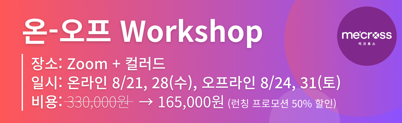 - 온라인+오프라인 참가 : 330,000원 ⇀ → 165,000원 (런칭 프로모션 50% 할인)